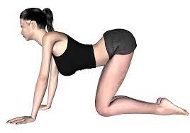 Gato-vaca: Es una postura que se realiza en cuatro patas y que consiste en alternar la flexión y la extensión de la columna vertebral. Se inhala al arquear la espalda hacia abajo (gato) y se exhala al redondearla hacia arriba (vaca). Esta postura ayuda a movilizar y fortalecer la columna vertebral.