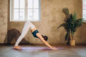 Perro boca abajo: Es una postura que se realiza desde cuatro patas y que consiste en elevar las caderas hacia el cielo formando una V invertida con el cuerpo. Se apoyan las palmas de las manos y las plantas de los pies en el suelo, se estiran los brazos y las piernas y se relaja la cabeza. Esta postura ayuda a estirar y tonificar todo el cuerpo, especialmente la espalda, los hombros, los brazos y las piernas.