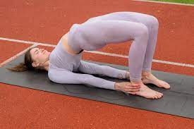Puente: Es una postura que se realiza desde una posición tumbada boca arriba y que consiste en doblar las rodillas y apoyar los pies en el suelo a la altura de las caderas. Se elevan las caderas hacia el cielo y se entrelazan las manos debajo del cuerpo, acercando los omóplatos. Se mantiene la cabeza y el cuello relajados. Esta postura ayuda a fortalecer y estirar la espalda, los glúteos, los abdominales y el pecho.